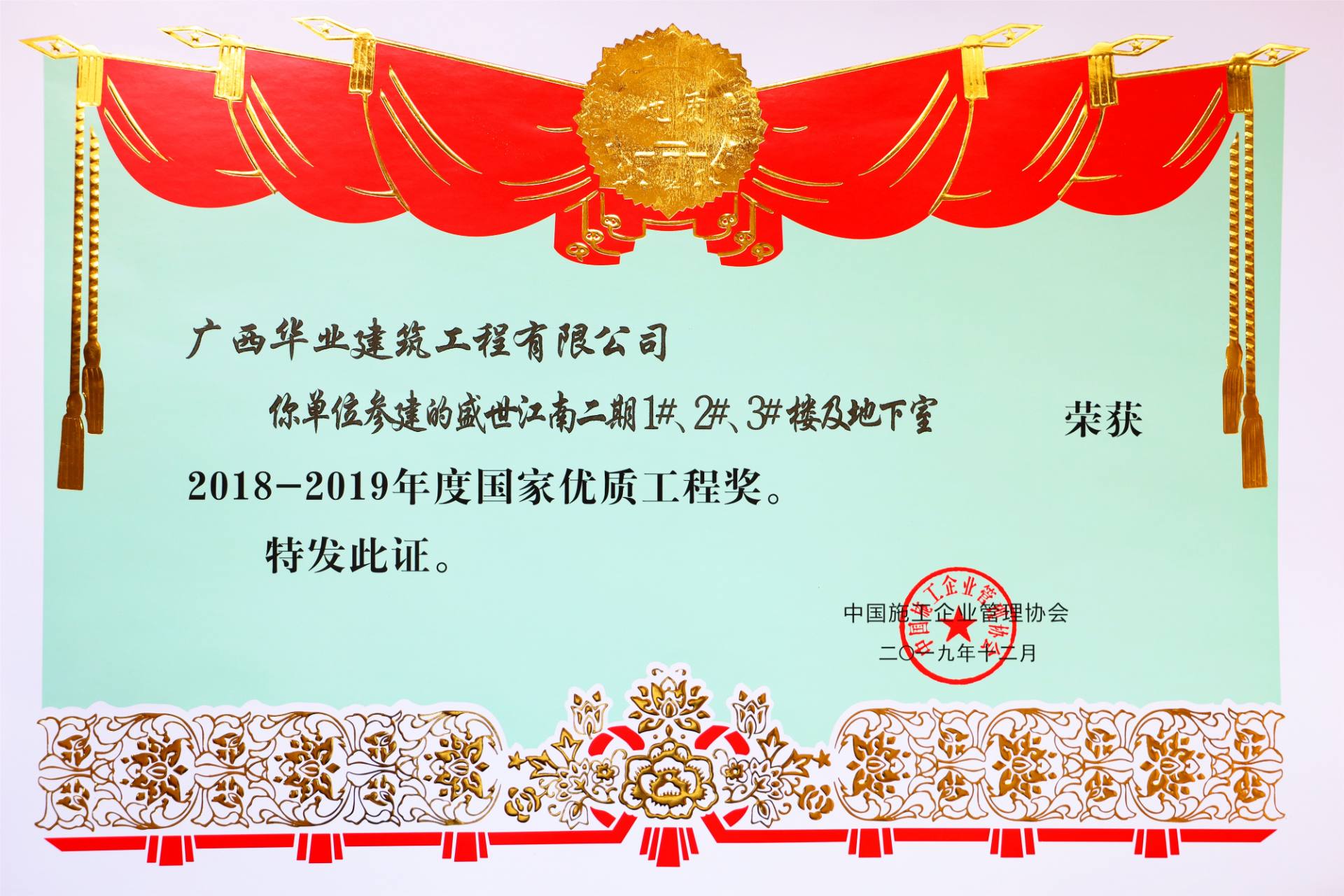 項(xiàng)目榮譽(yù):2019年全區(qū)建筑施工安全標(biāo)準(zhǔn)化觀(guān)摩項(xiàng)目 -